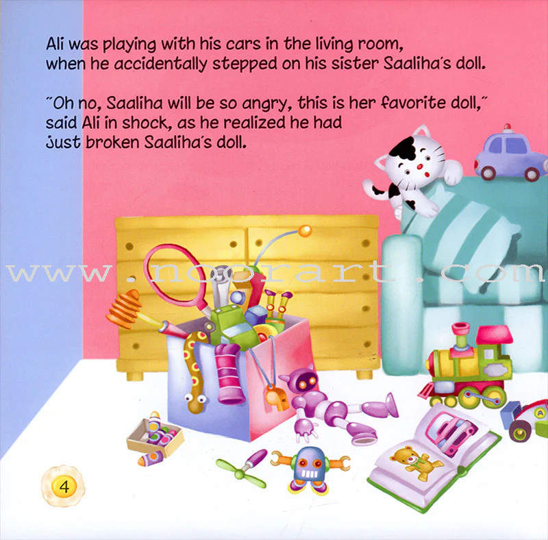 When Ali accidentally breaks Saaliha's doll, he doesn't know what to do. He soon realizes that being honest and telling Saaliha about what happened is the best thing to do.
