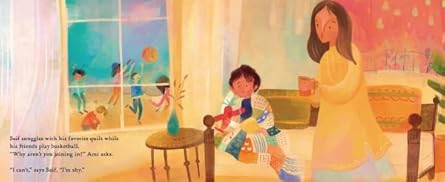 Saif is just shy," or at least that's what everyone tells him. When his mom comforts him with a patchwork quilt made of his special memories, he remembers that he's so much more.